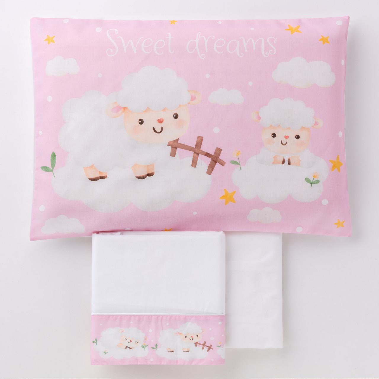 COMPLETO LENZUOLA CULLA IN PERCALLE DI COTONE BABY CON STAMPA DIGITALE SWEET ROSA