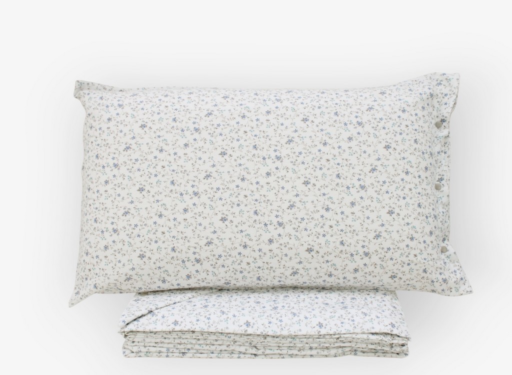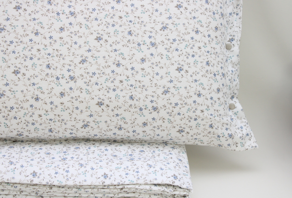 COMPLETO LENZUOLA PIAZZA E MEZZA IN FLANELLA CON FIORELLINI ARMONIA CELESTE