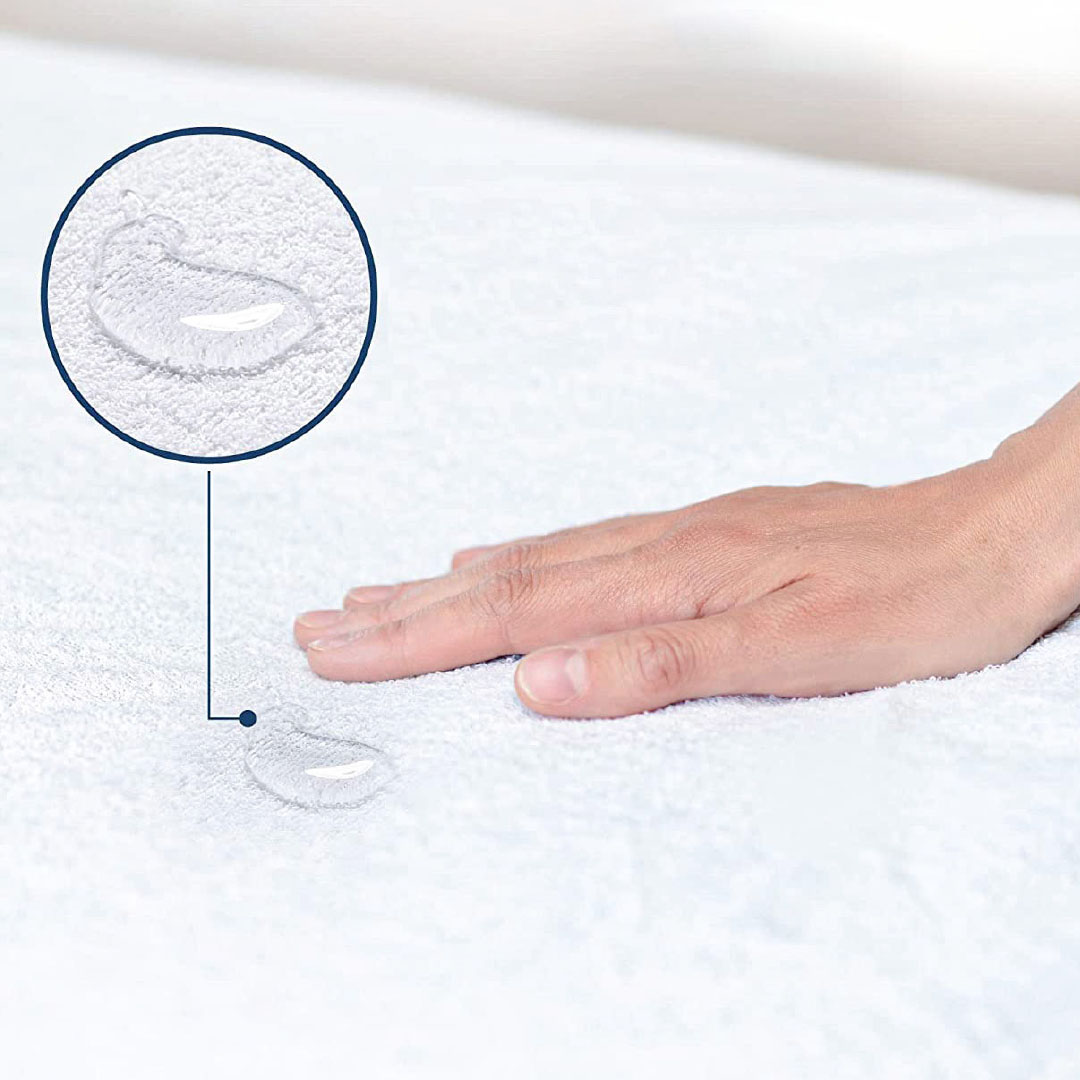 Coprimaterasso impermeabile di altissima qualità è realizzato sopra in spugna di 65% cotone e 35% poliestere, il retro in 100% PU impermeabile. E' caratterizzato da ampi lati avvolgenti ,membrana traspirante, non rumoroso.