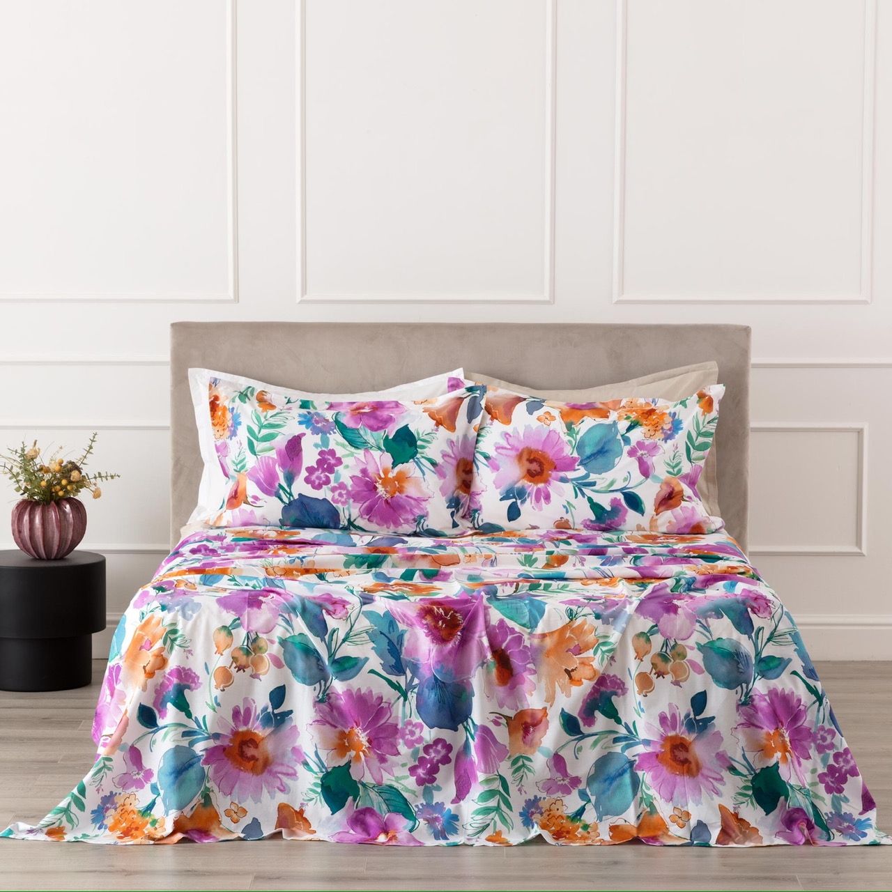 COMPLETO LENZUOLA RIVIERA IN PERCALLLE DI COTONE FLOREALE MELIKA