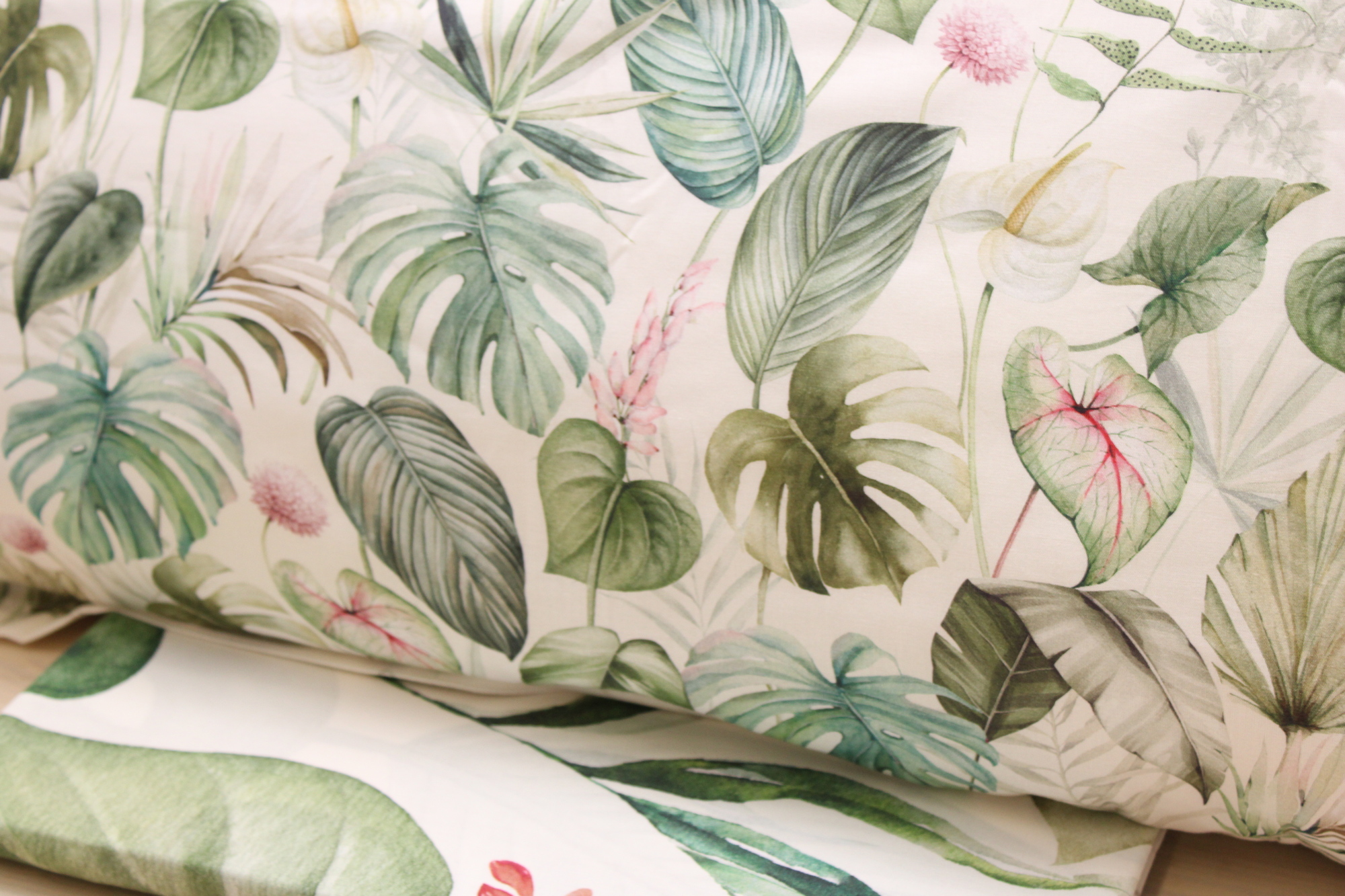 Parure lenzuola matrimoniale in morbido cotone di qualità, con stampa digitale foliage.