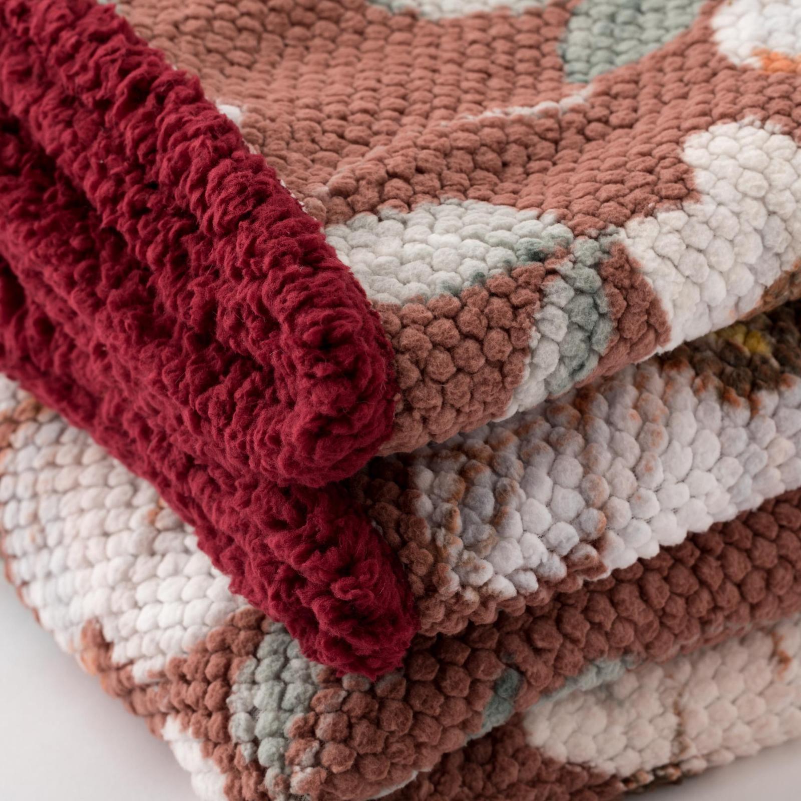 PLAID NIDO D'APE JACQUARD CON FANTASIA FLOREALE CLERIS ROSSO
