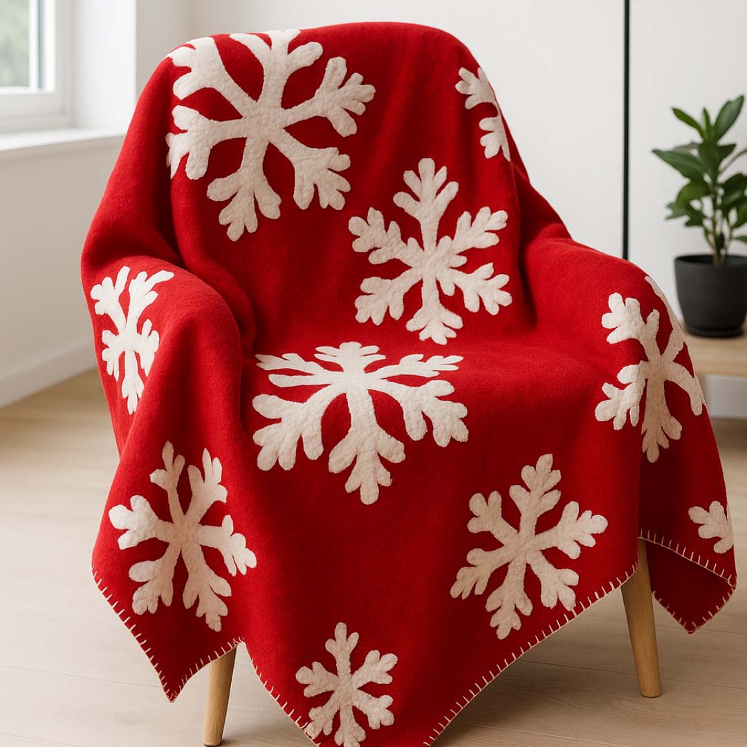 PLAID SNOWLY EFFETTO LANA CON FIOCCHI DI NEVE 3D ROSSO