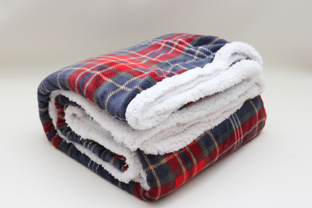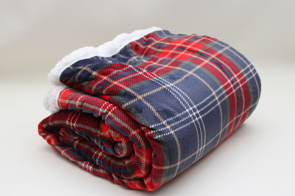 PLAID TARTAN FONDO BLU CON SHERPA 210X240 350GR