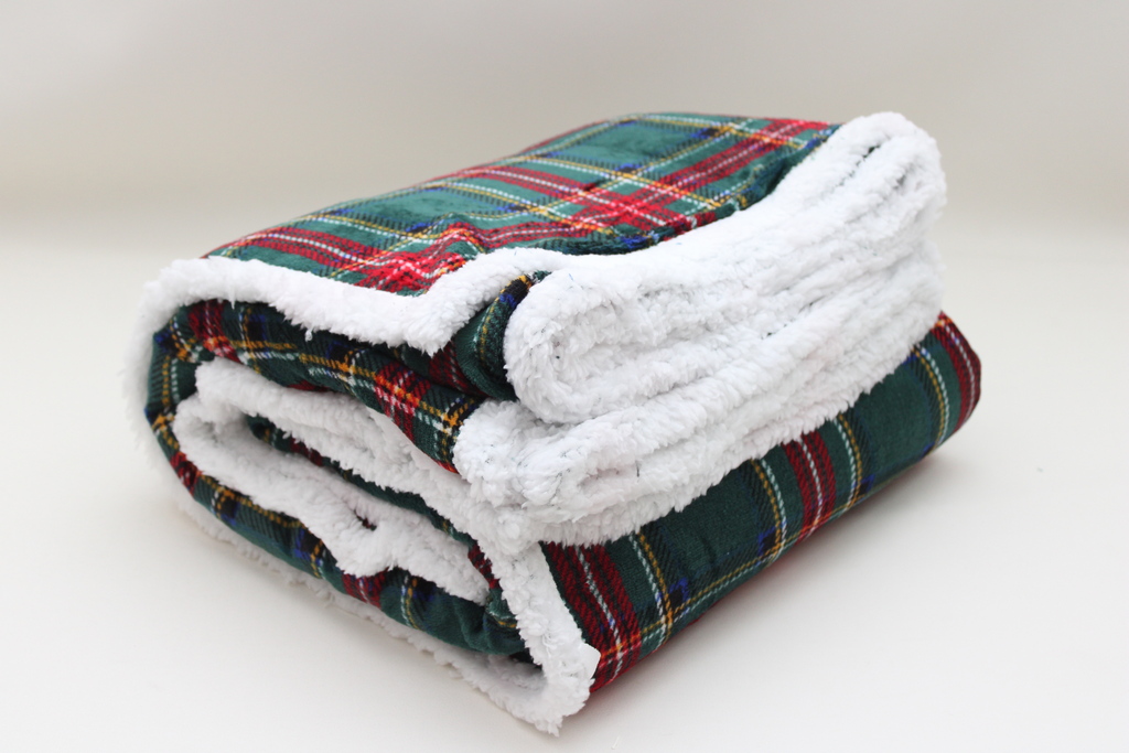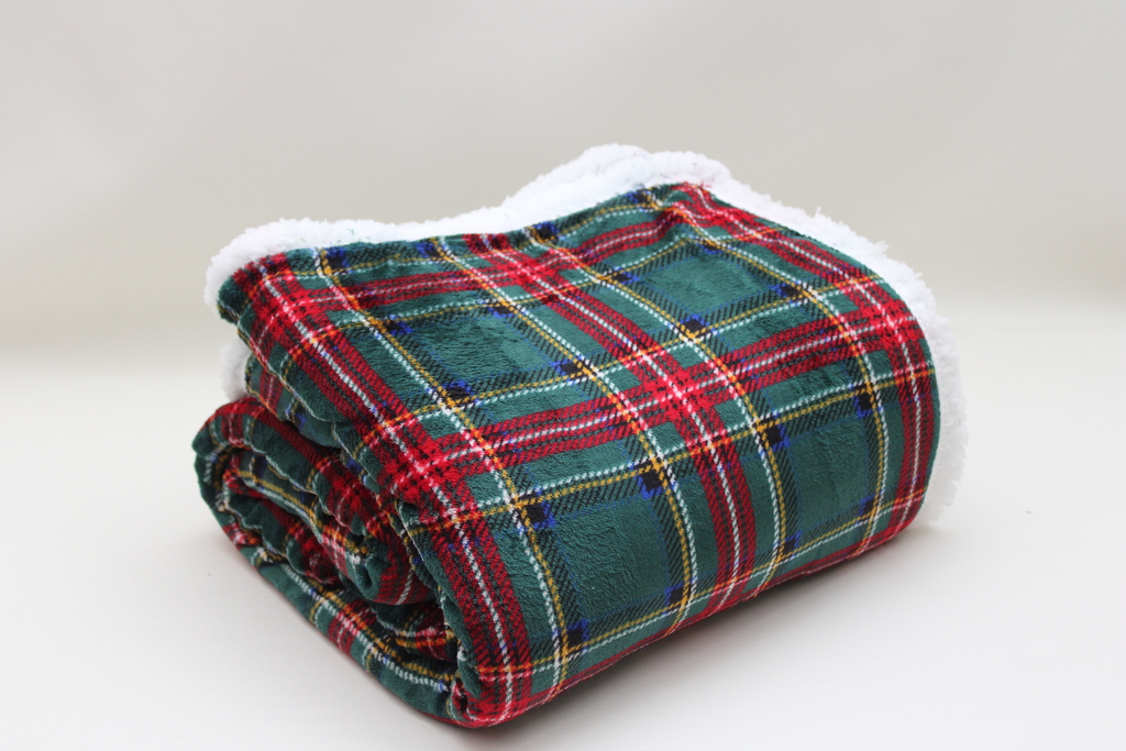 PLAID TARTAN FONDO VERDE CON SHERPA 210X240 350GR