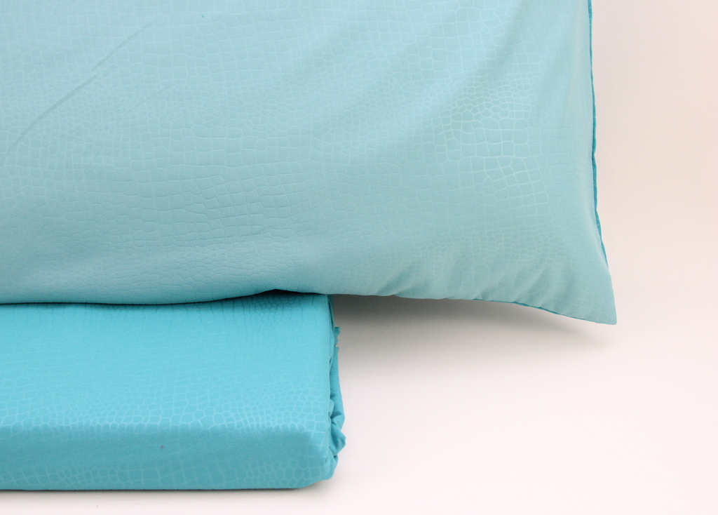 Sacco copripiumino matrimoniale tinta unita double face, azzurro/verde acqua. Realizzato in tessuto jacquart in microfibra. 255x230