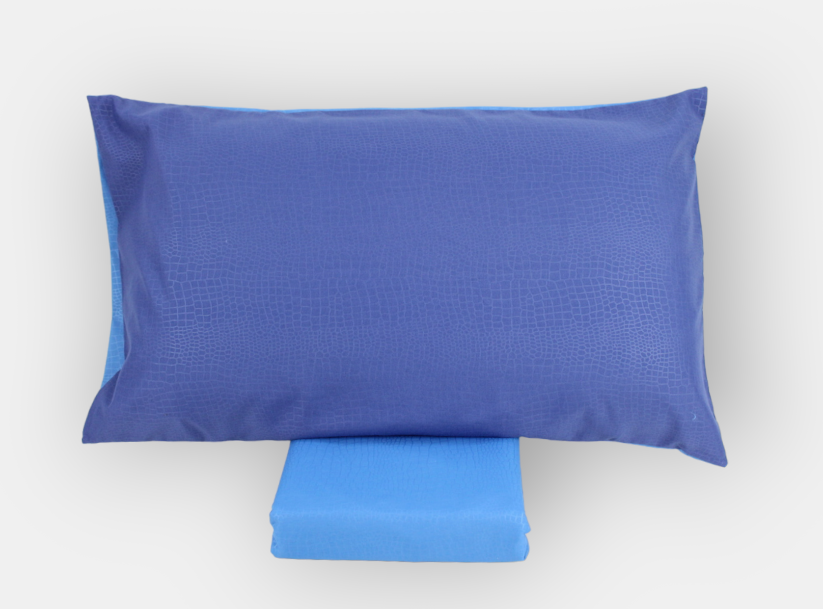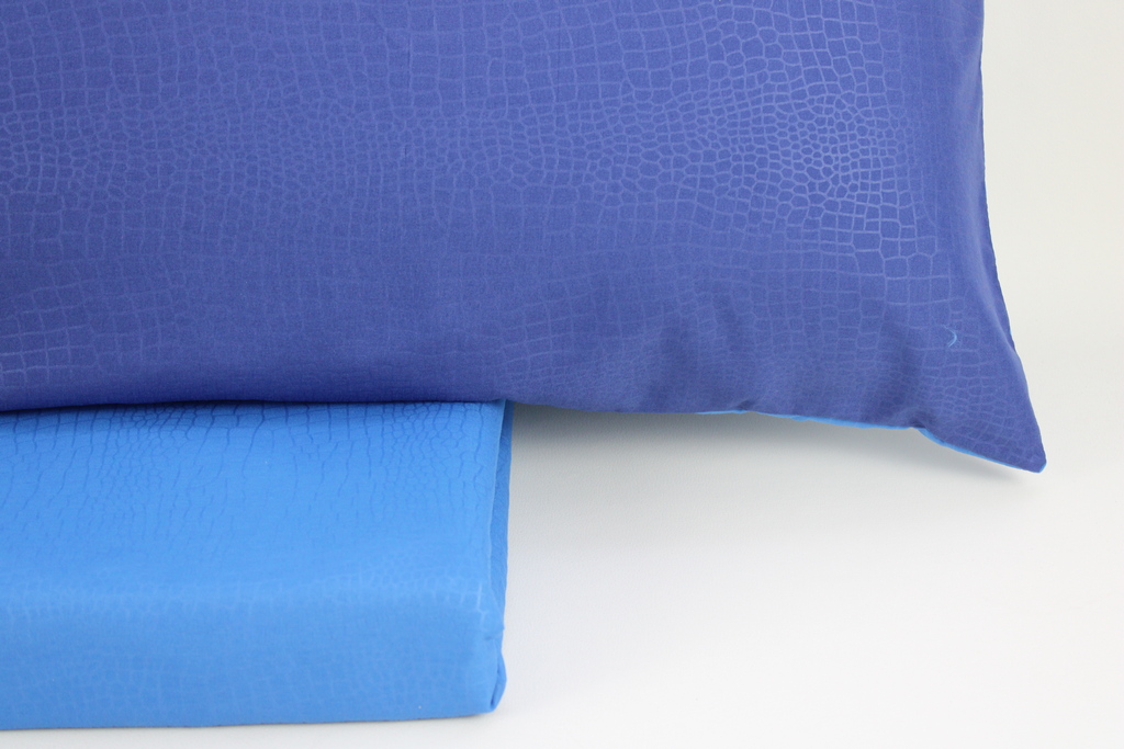 Sacco copripiumino piazza e mezza tinta unita double face, blu/azzurro. Realizzato in tessuto jacquart in microfibra. 210x230