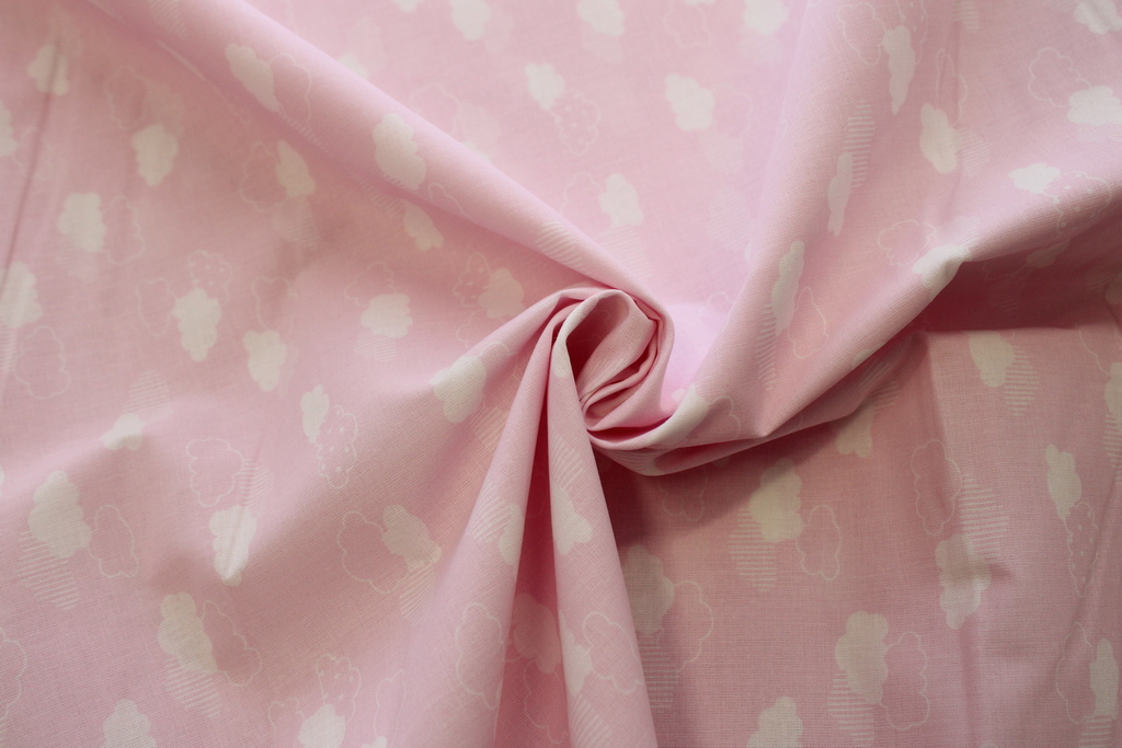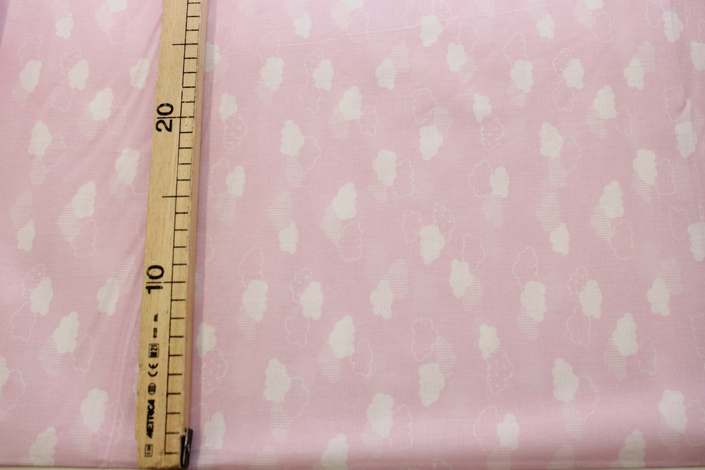 Info sui prodotti "TESSUTO H140 IN 100%COTONE FANTASIA CON NUVOLE ROSA"