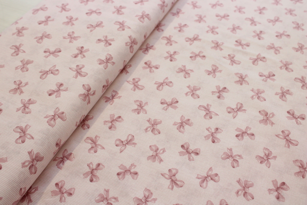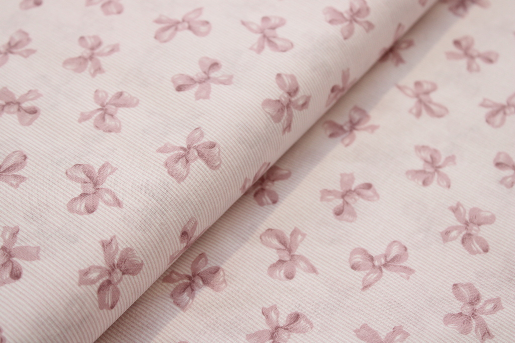 TESSUTO H150 MILLERIGHE DI COTONE CON FIOCCHETTI ROSA