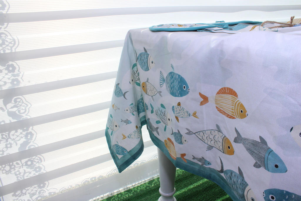 Info sui prodotti "TOVAGLIA 140X240 IN COTONE FANTASIA MARINA CON PESCIOLINI MILLY"
