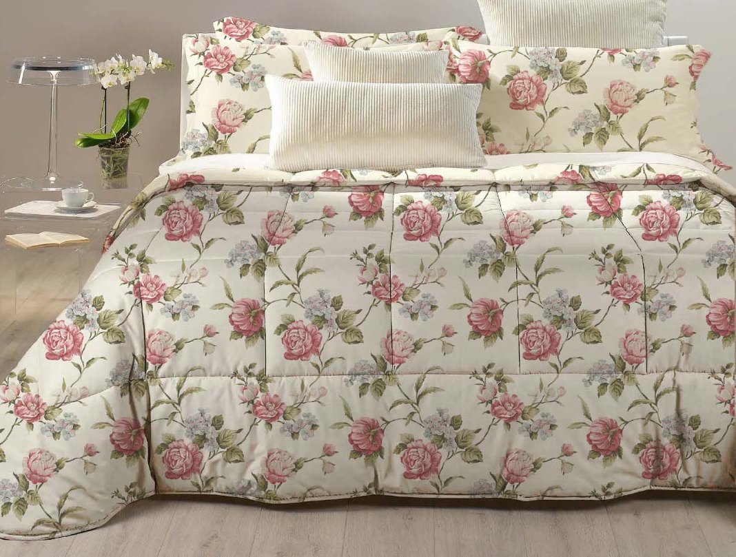 Trapunta JESS matrimoniale con stampamotivo floreale. Realizzata in morbido microraso e con imbottitura in soffice microfibr 300gr, 170x250.