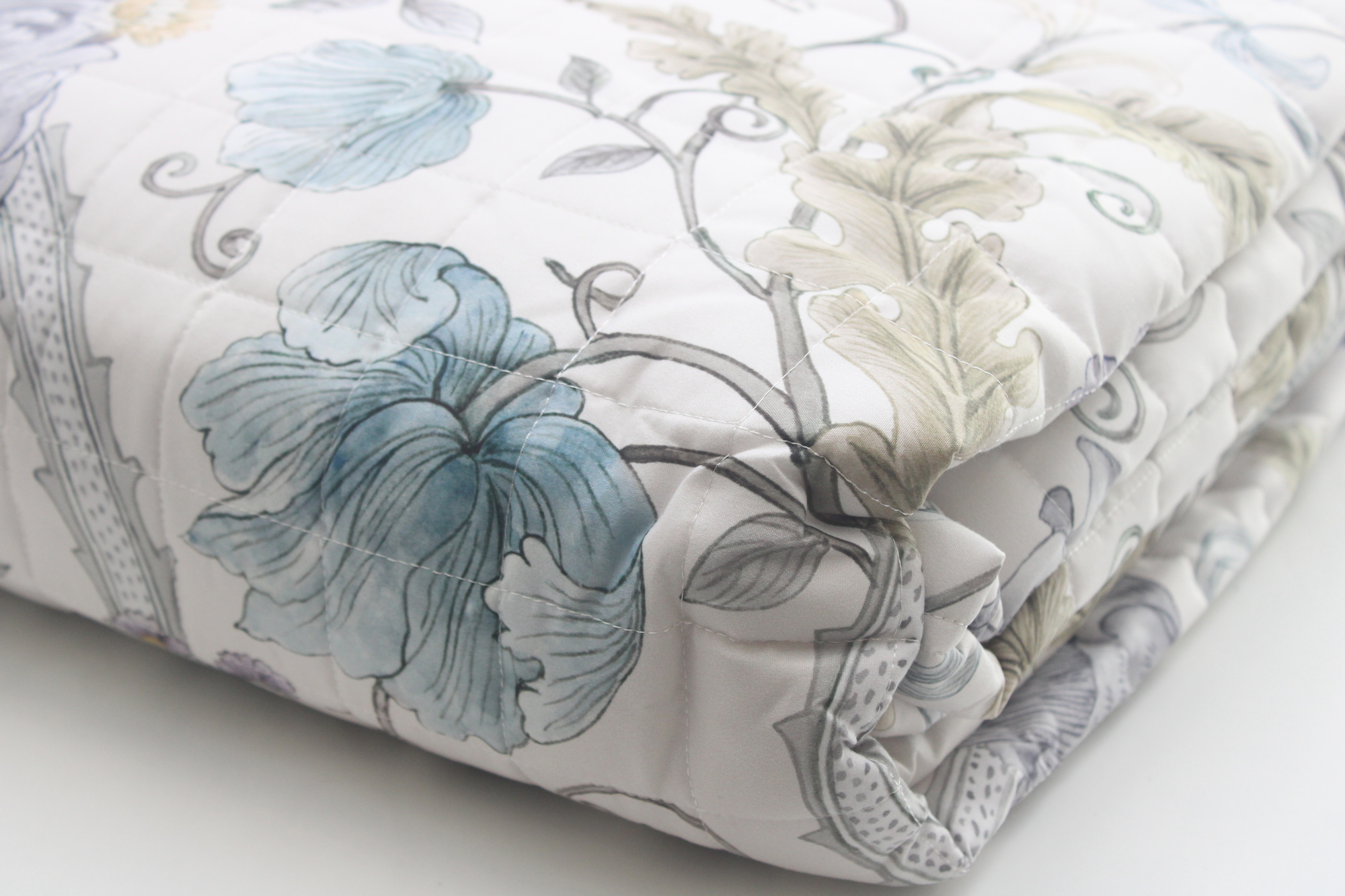 Trapuntino BLAIR morbido e perfetto per la mezza stagione, con motivo floreale stampato. Realizzato in fibra anallergica e antibatterica con imbottitura soft-effect, 260x260