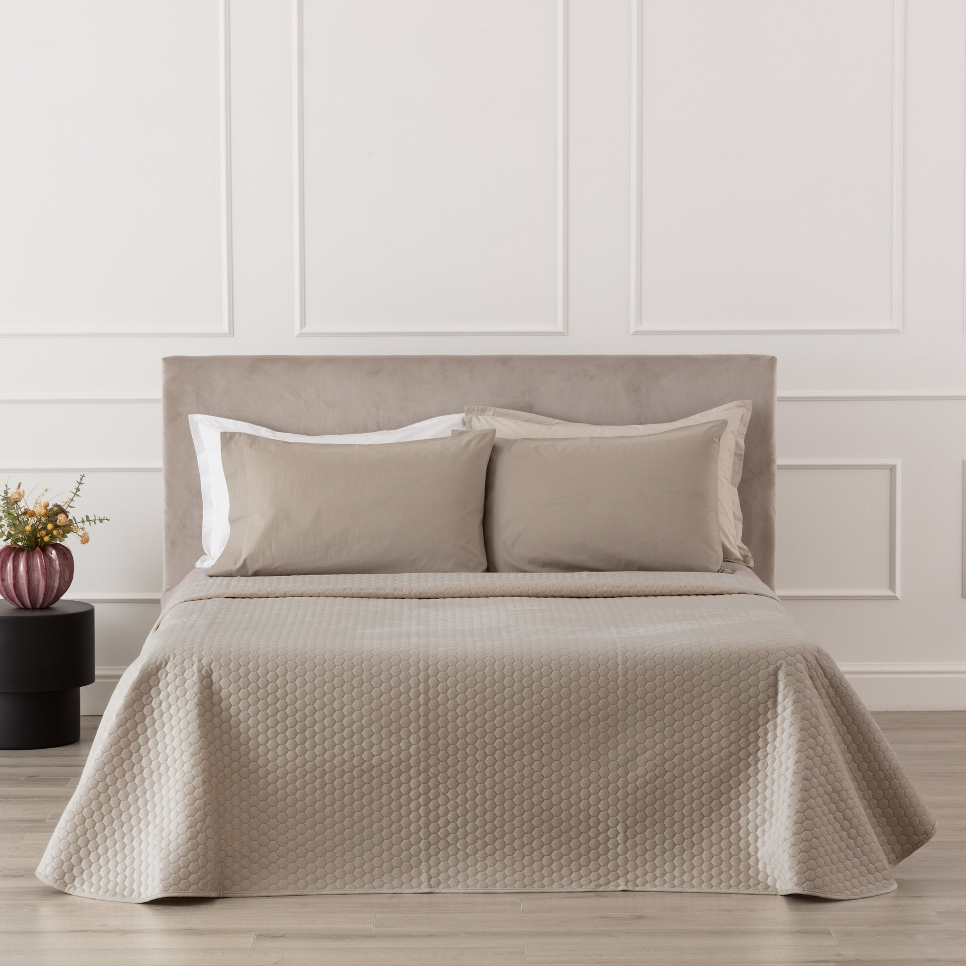 TRAPUNTINO MATRIMONIALE IN VELLUTO TINTA UNITA TORTORA EXAGON