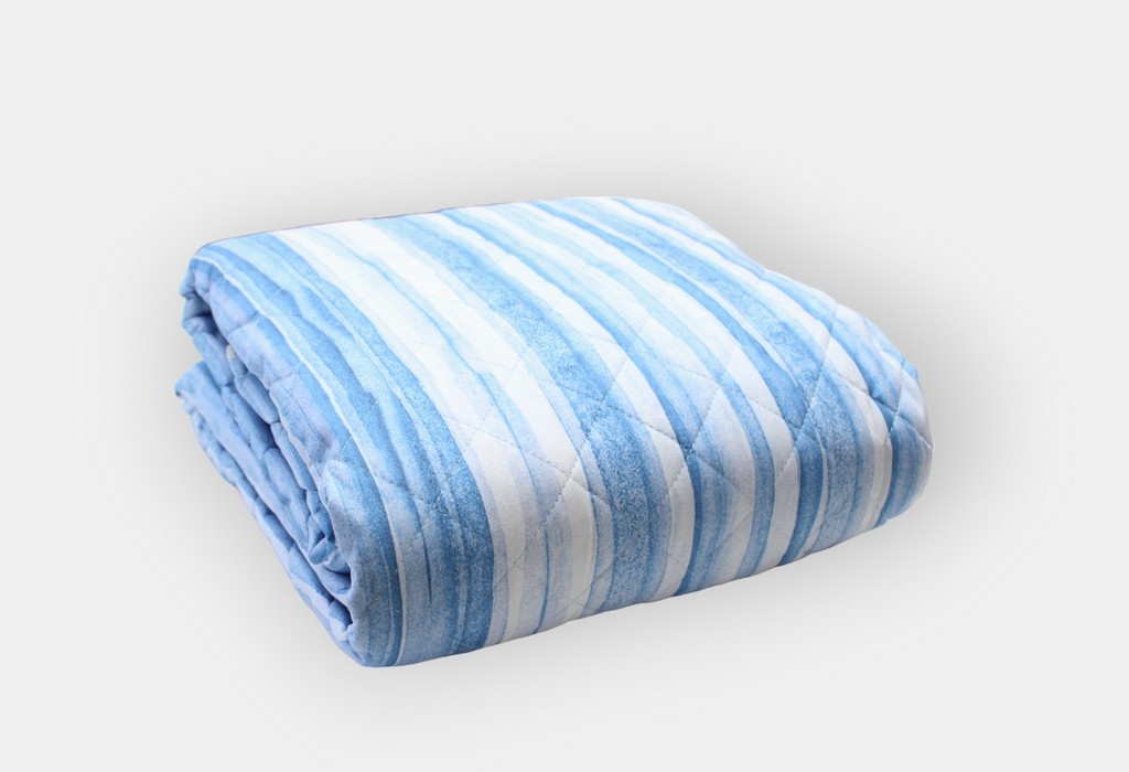 Info sui prodotti "TRAPUNTINO PIAZZA E MEZZA CALITHEA CON STAMPA DIGITALE A RIGHE BLU"