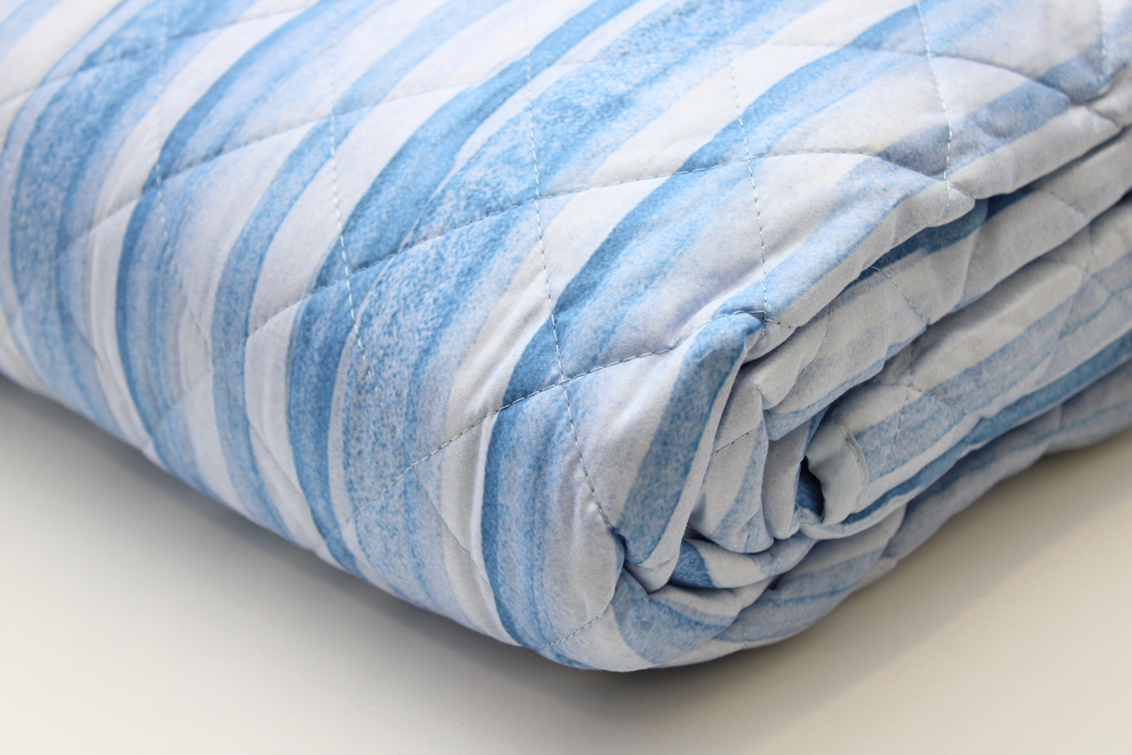 Trapuntino CALITHEA con stampa digitale a righe, realizzato in fibra anallergica e antibatterica con imbottitura soft effect, 210x260.
